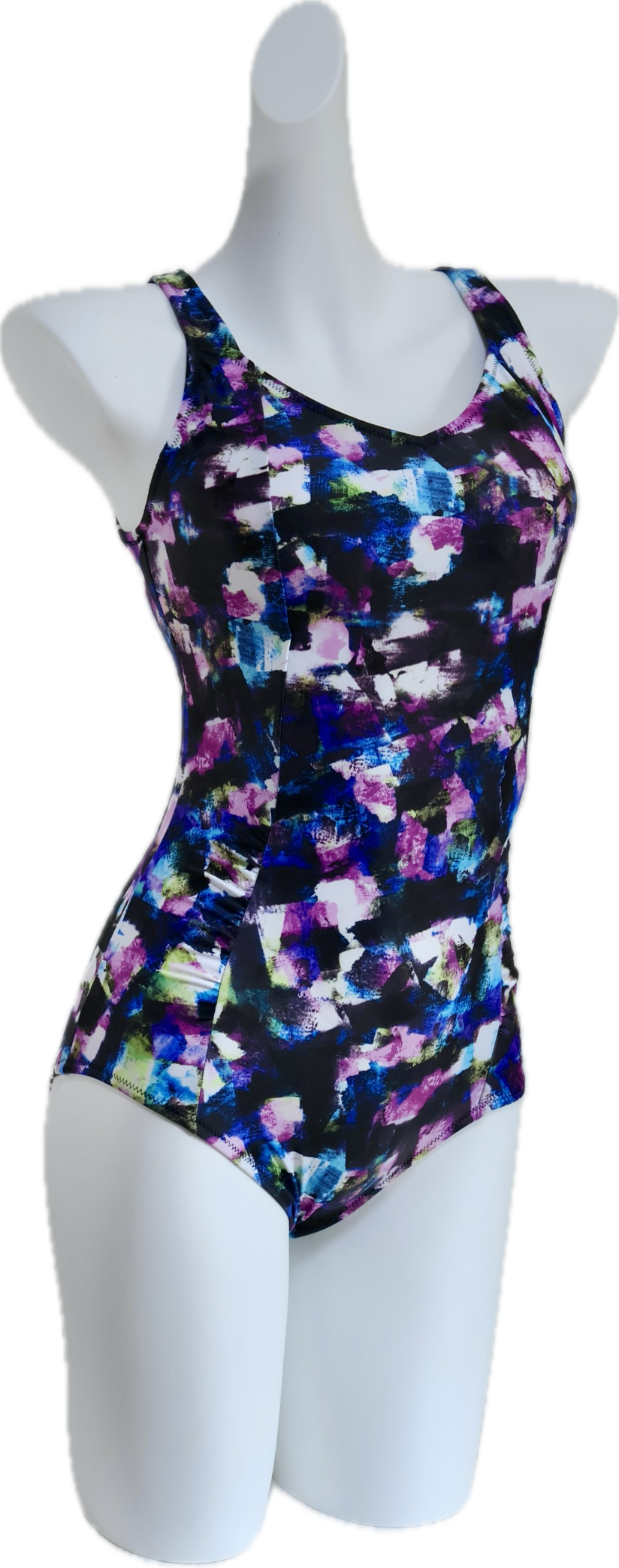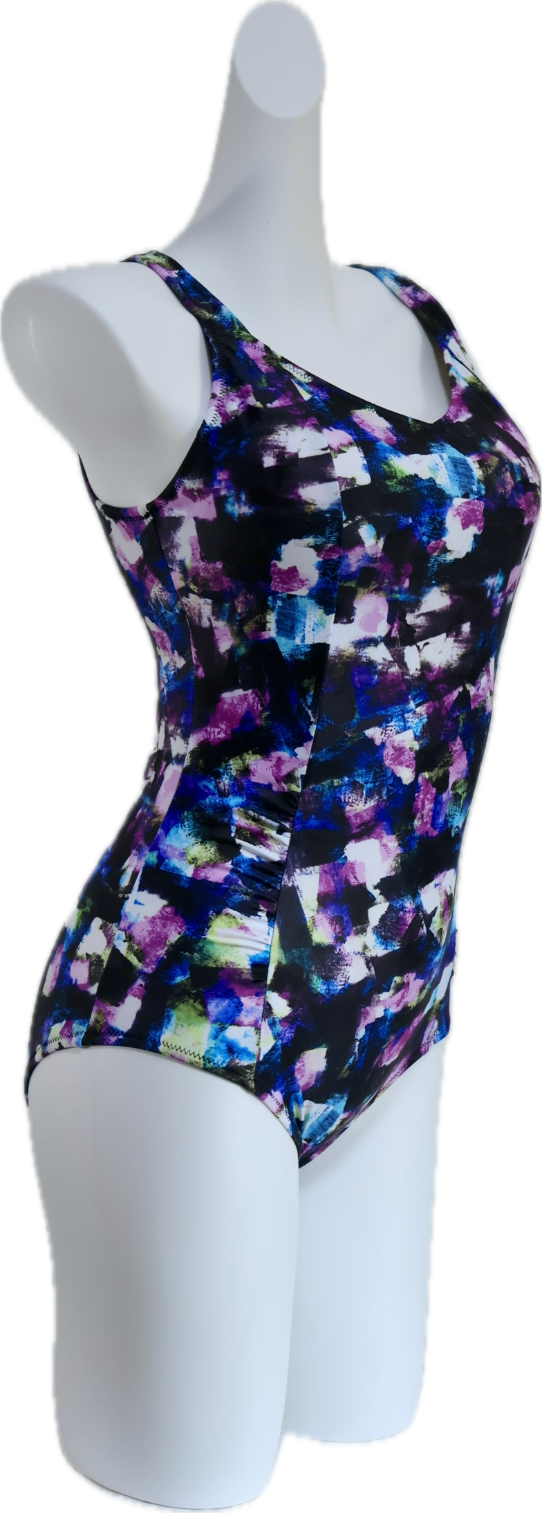 エネルギッシュで洗練された抽象柄が目を引くスイムウェア。