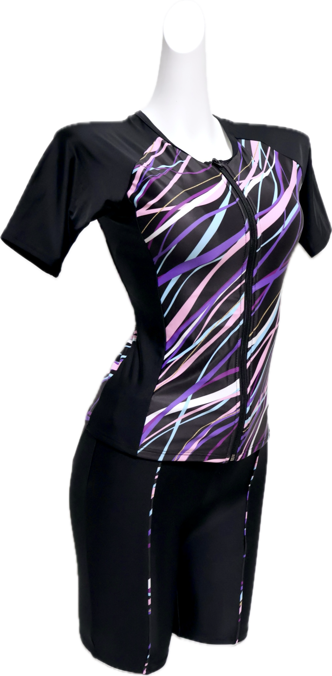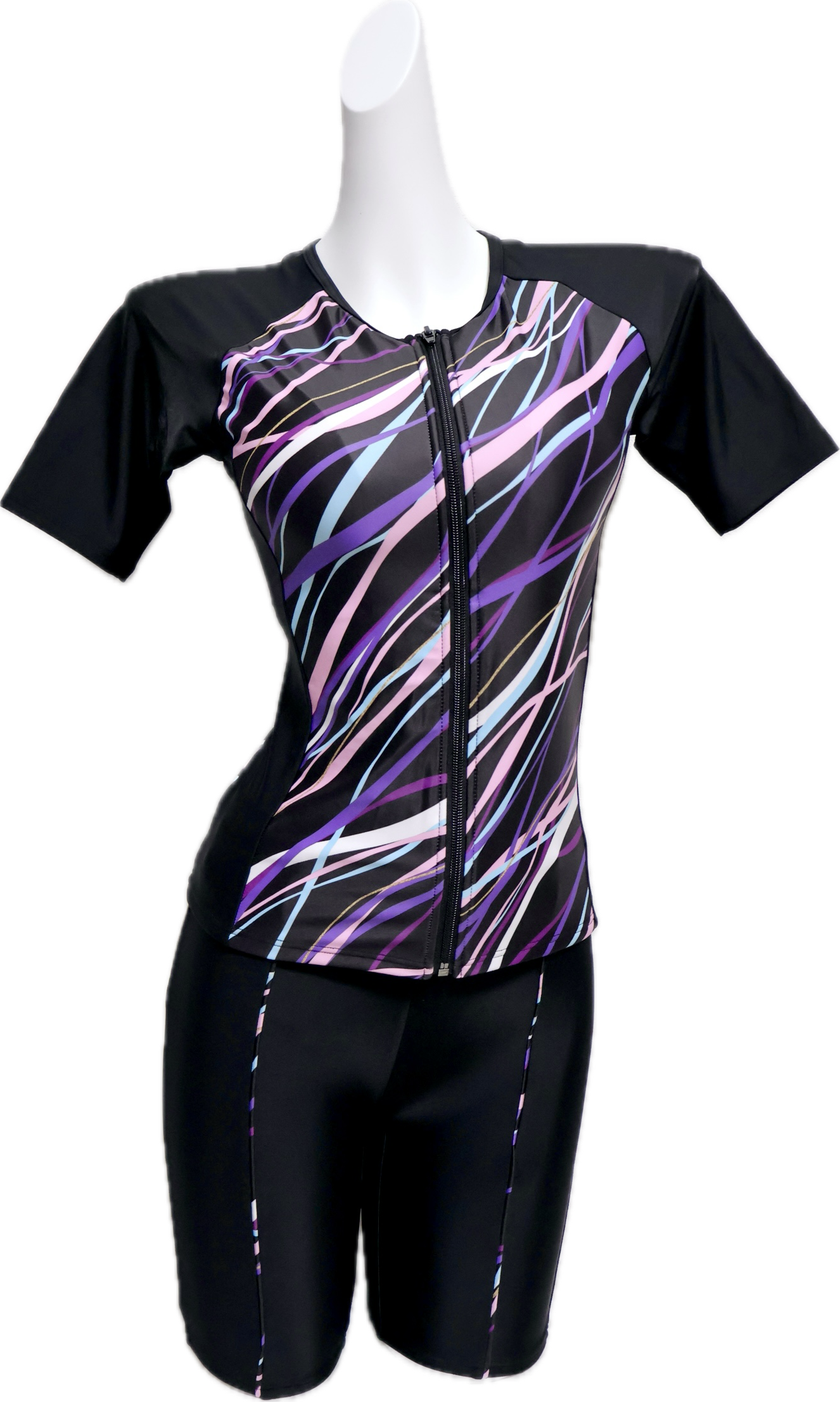 【BLACK SHARK】ブラックシャーク BS956073PUR|ウェーブ・グラフィック| フィットネス 水着 競泳 スイム セパレート セットアップ 半袖 フィットネスウェア