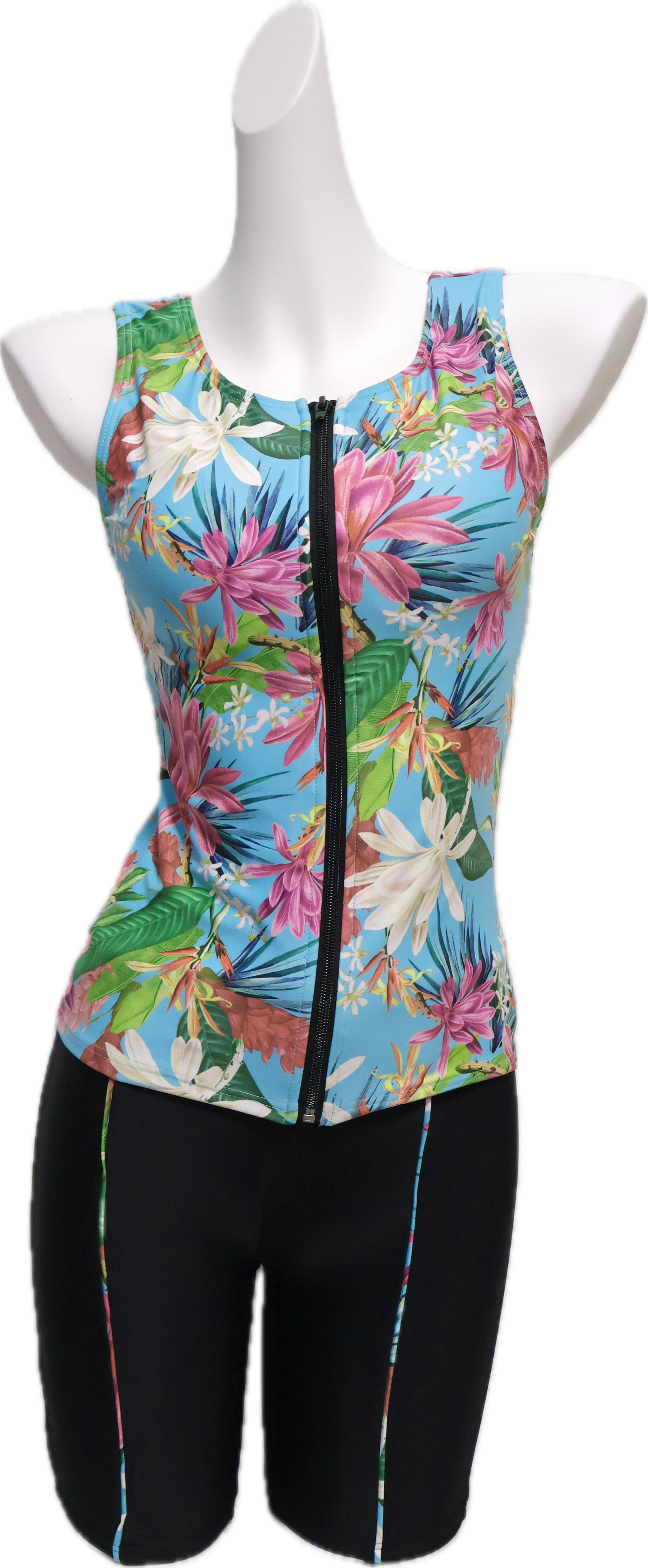 【BLACK SHARK】ブラックシャーク BS956051TQ| 華やかなボタニカル柄 | フィットネス 競泳 セパレート セットアップ 水着