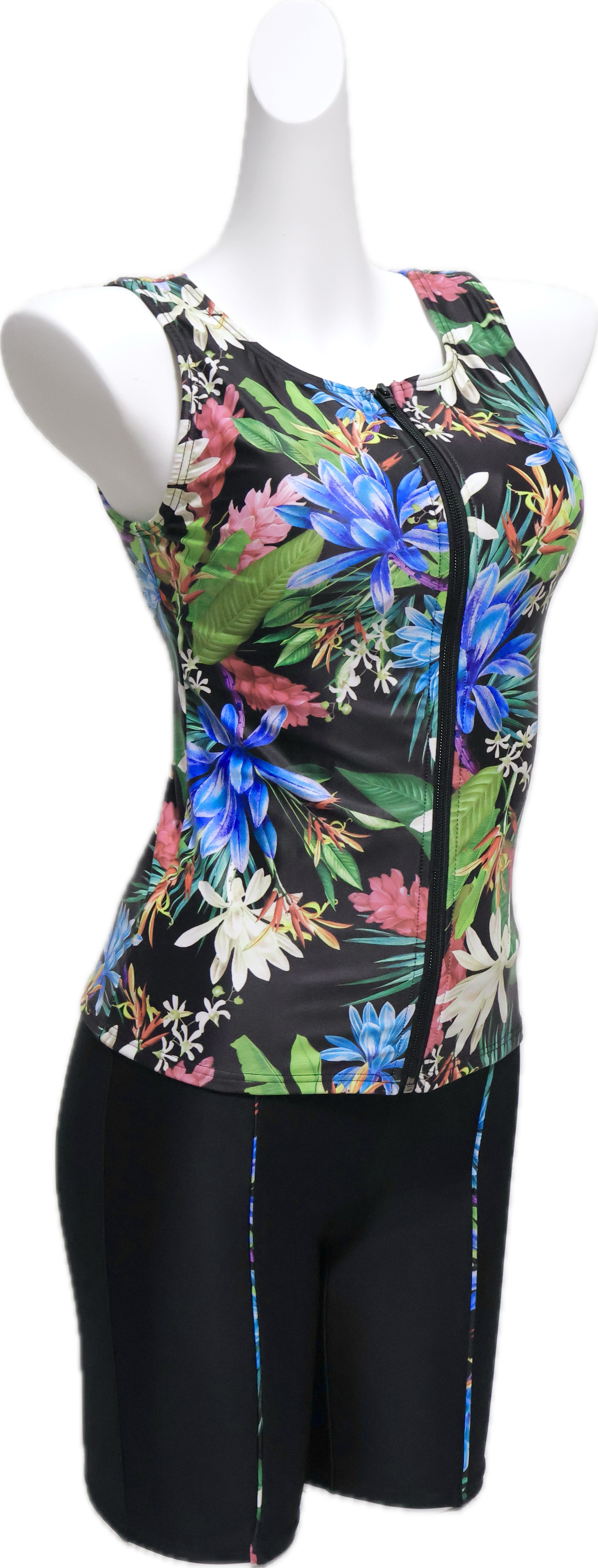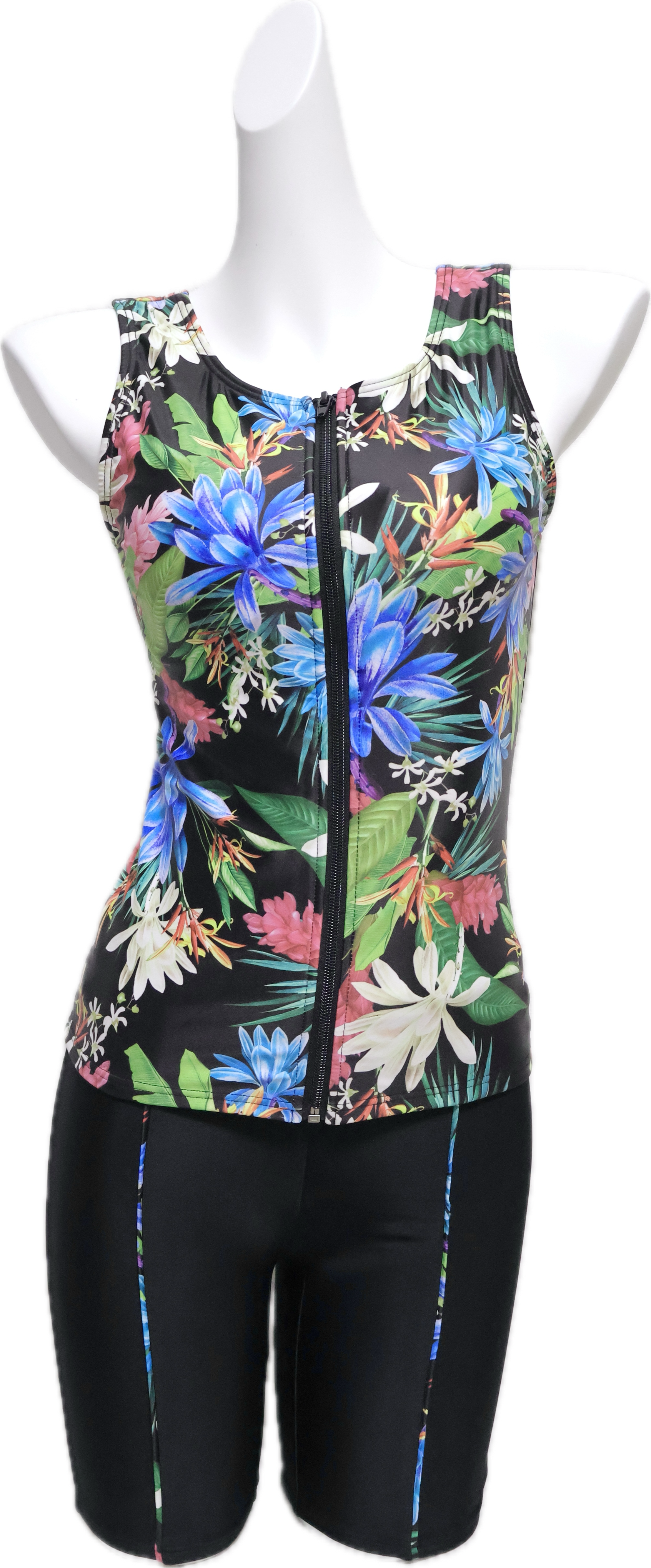 【BLACK SHARK】ブラックシャーク BS956051BK| 華やかなボタニカル柄 | フィットネス 競泳 セパレート セットアップ 水着
