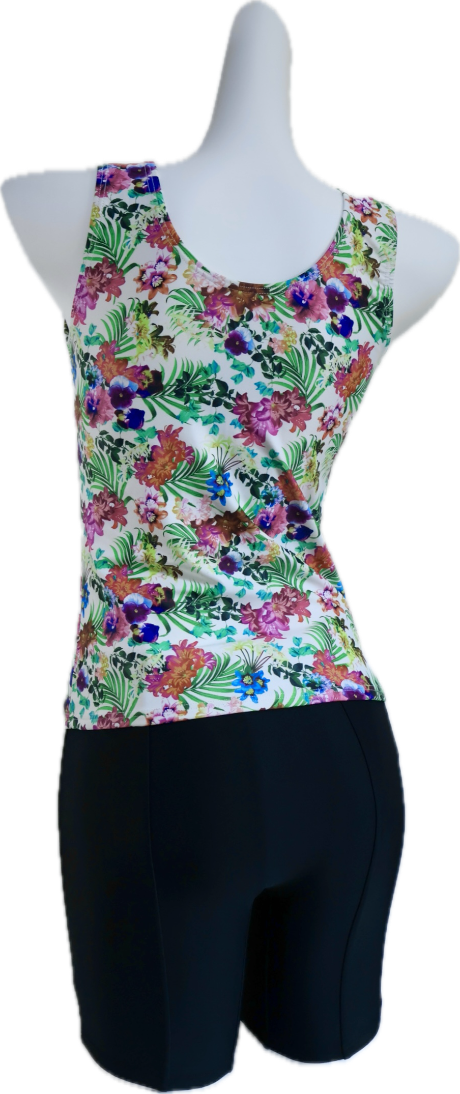 【BLACK SHARK】ブラックシャーク BS956052BK| 魅せるフラワー&リーフ | フィットネス 競泳 セパレート セットアップ 水着