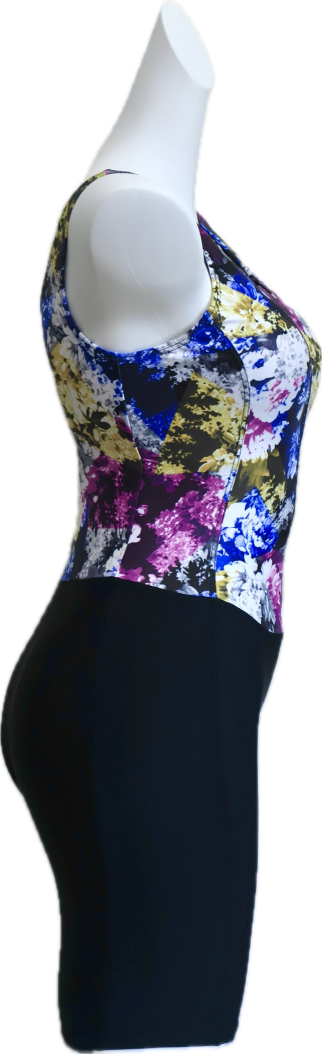 サイドにかけて流れるような花柄のグラデーションが、ウエストラインを自然にシェイプ。