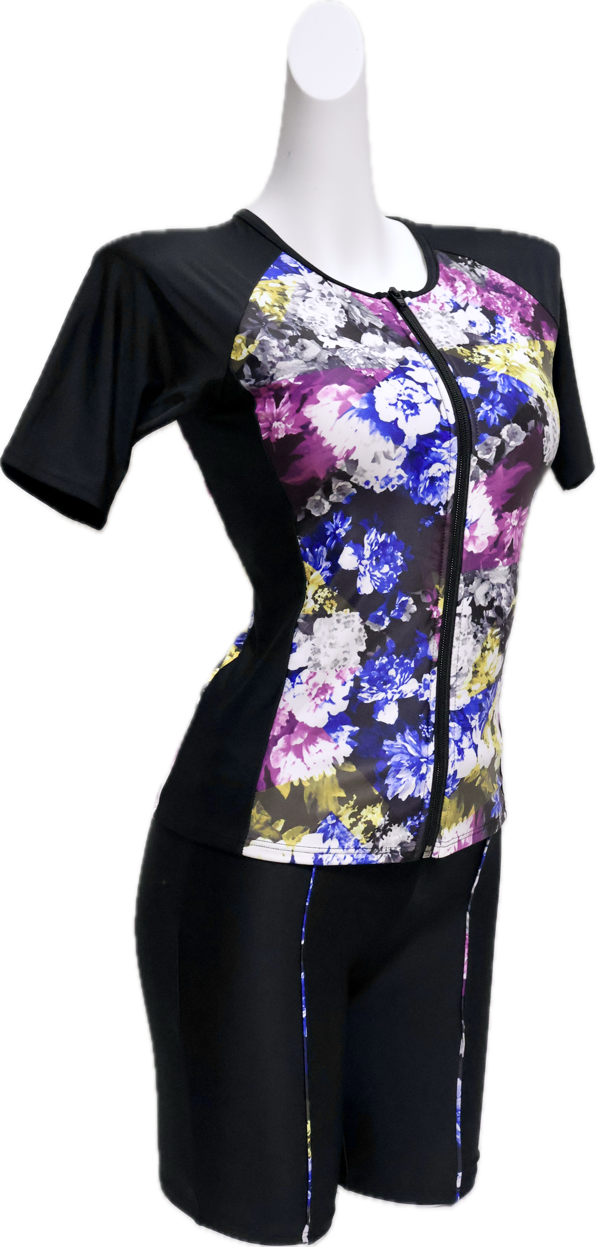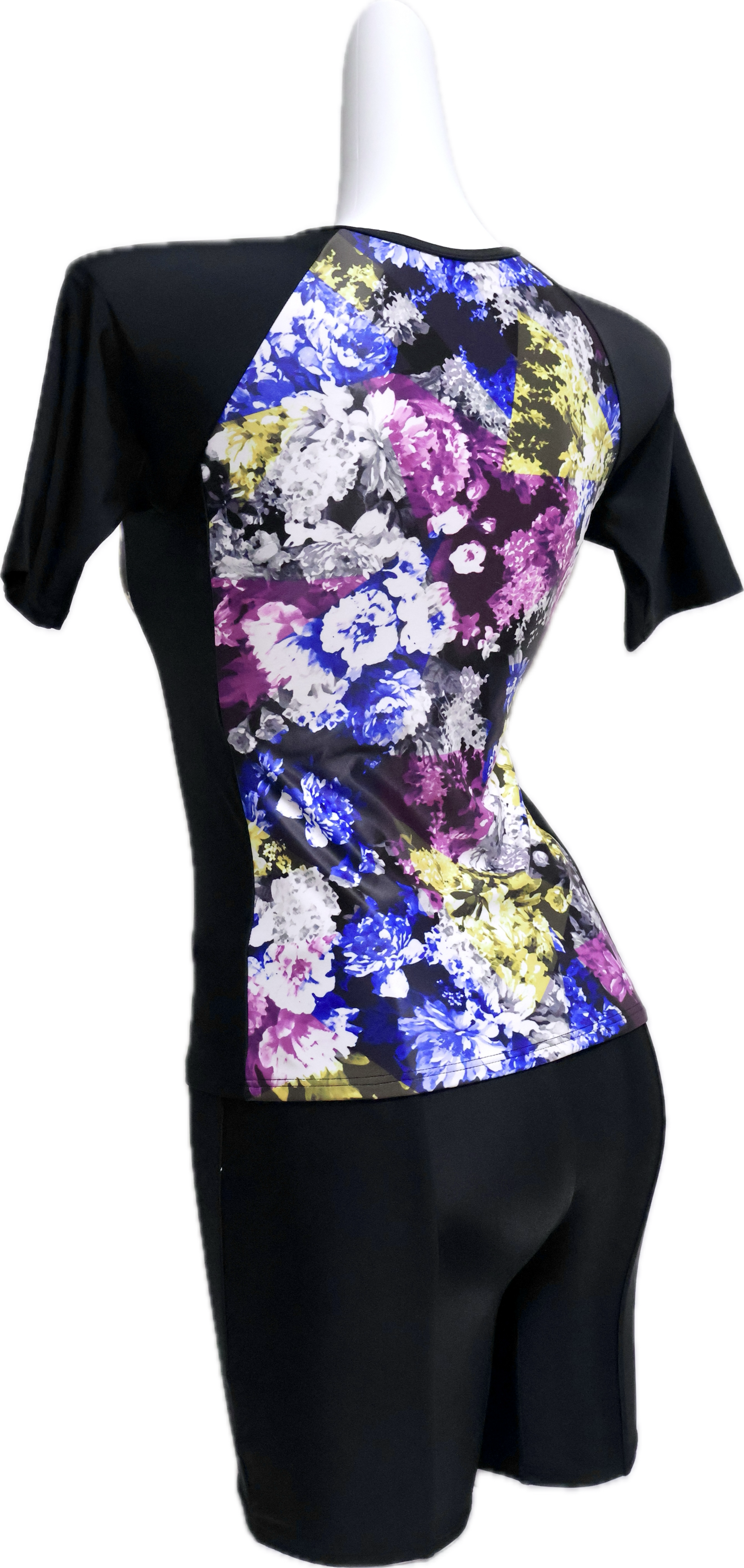 【BLACK SHARK】ブラックシャーク BS956057PUR| ラグジュアリーフラワー | フィットネス 競泳 半袖 セットアップ セパレート水着 ジムウェア スイムウェア