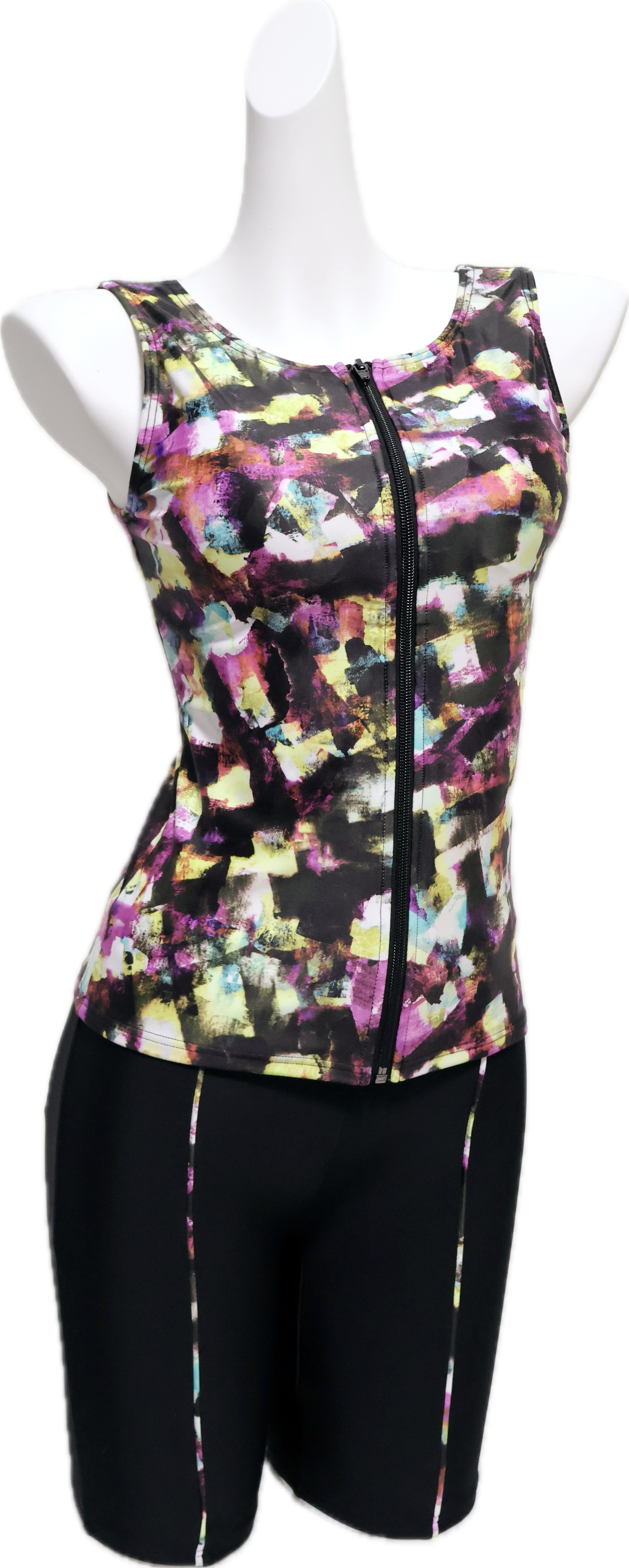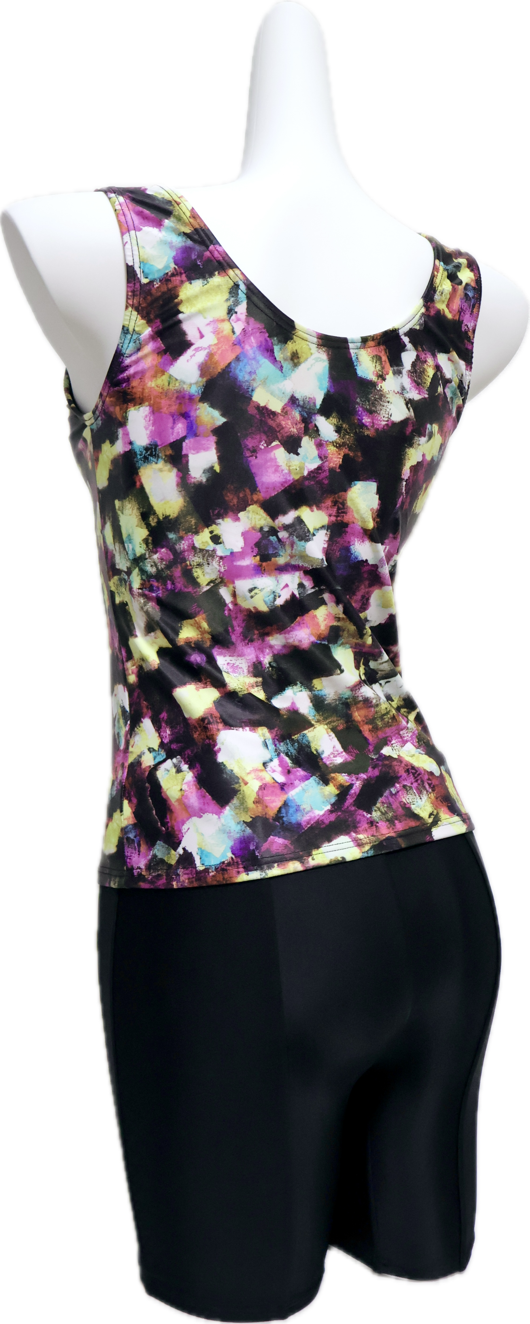 エネルギッシュで洗練された抽象柄が目を引くスイムウェア。