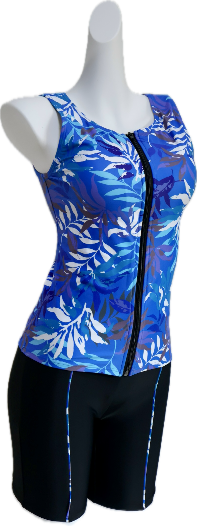 【BLACK SHARK】ブラックシャーク BS956059BL |大人のためのボタニカル柄| フィットネス 水着 競泳 スイム セパレート セットアップ フィットネスウェア